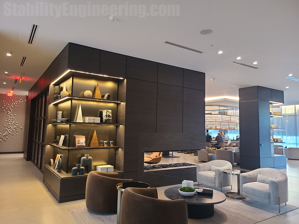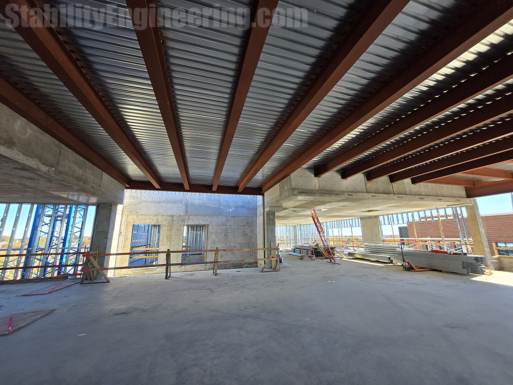 Additional elements, such as a steel-framed porte-cochere at the main entry, were designed to blend with the overall structure while supporting functional demands. The foundation system combines shallow isolated and mat foundations bearing on aggregate pier–improved soil, optimizing load transfer while accommodating site conditions.